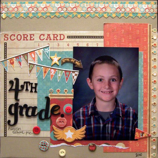 4th grade???? My oldest is actually in 4th grade??? when did that happen? I know.. I am still in shock and the school year is coming up to the half way mark. I don't know if I can't believe I'm old enough to have a 4th grader or that he is just growing up... Well here is Austin's 4th grade pic this year from school. I used the Crate School Spirit line for this page, and I just love how it really can go for boys or for girls.. perfect.... I used the Sketchy Thursday's special facebook sketch for this page and linked it up there... very fun...